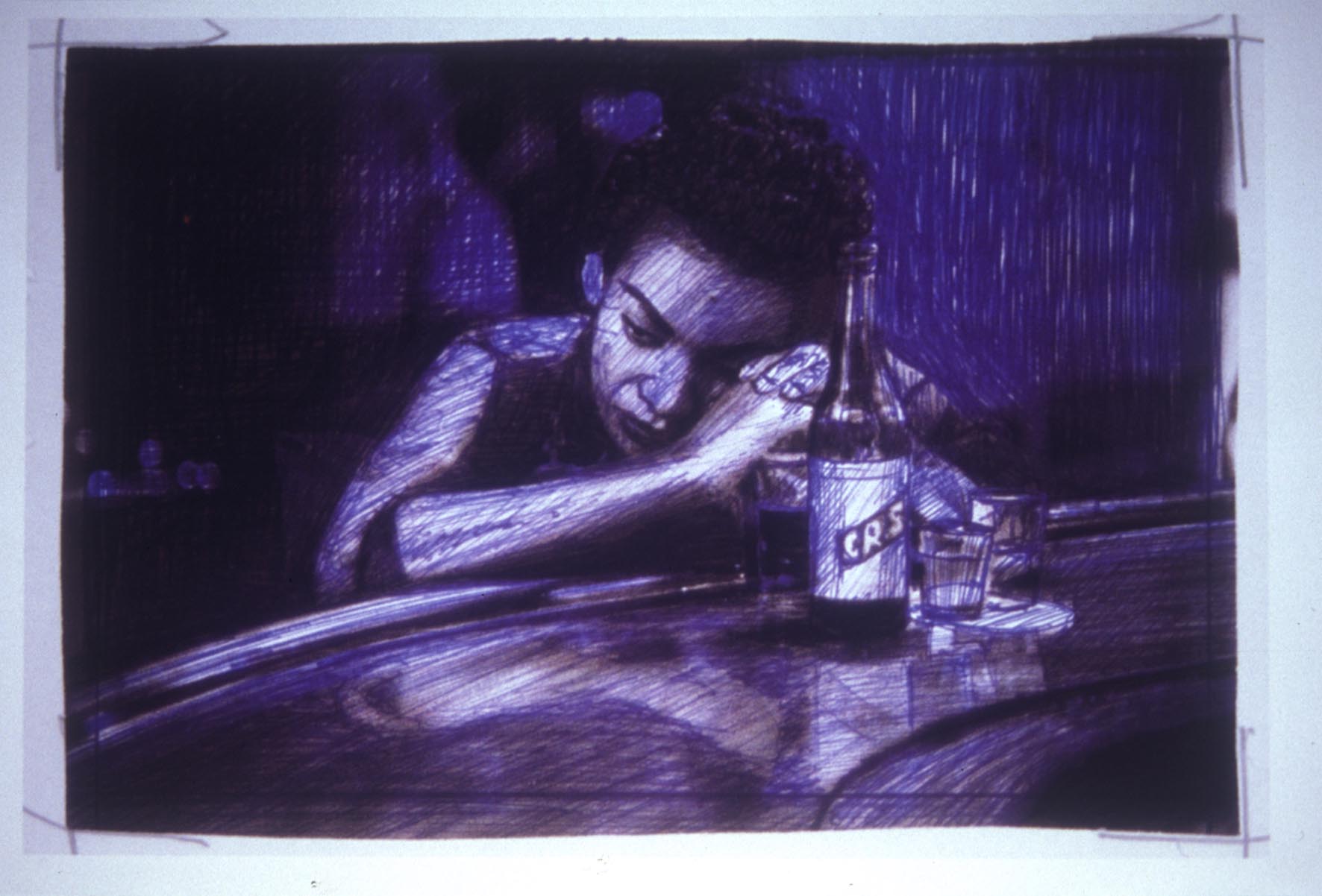 Jan Fabre, dalla serie La falsificazione della festa segreta (angosce), 1993-1995, Escaped from the Police, inchiostro bic su immagine. |