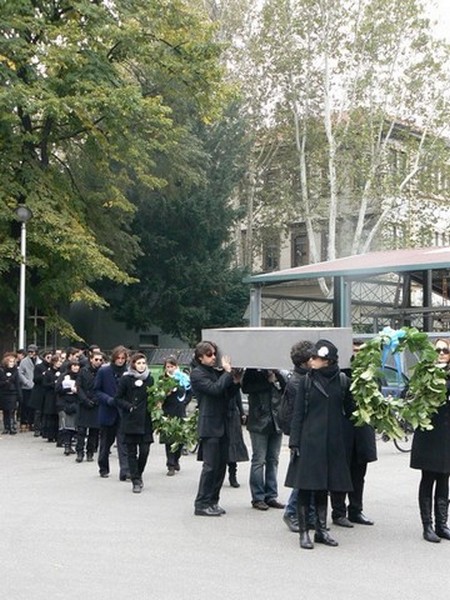 Gli allievi non si arrendono e organizzano il funerale di Paolo Grassi attraversando la città con un corteo funebre e facendo sentire la loro presenza fuori da Palazzo Marino e dal Piccolo Teatro (guarda il video: http://www.youtube.com/watch?v=jYnZrQkhZMg ).